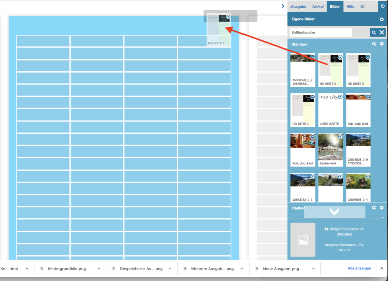 Laden Sie das Bild in Ihre Bilderablage hoch und ziehen Sie es in das Layout, schon ist Ihr Hintergrundbild fertig!