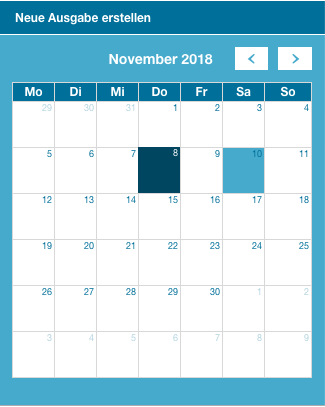 Über den Kalender im rechten unteren Eck des Bildschirms können Sie für jeden Tag beliebig viele NEUE Ausgaben erstellen.